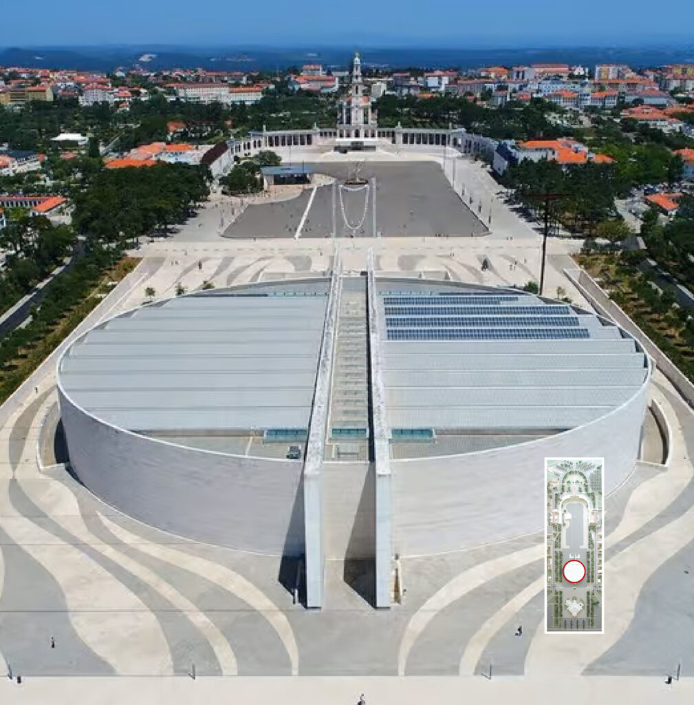 A intenção de construir uma nova igreja no Santuário de Fátima remonta a 1973. Em 1997, o Santuário organizou um concurso internacional, do qual resultou a selecção do arquitecto grego Alexandros Tombazis, com um projecto que previa a construção da nova igreja ao fundo do Recinto de Oração, junto à Praça de Pio XII.